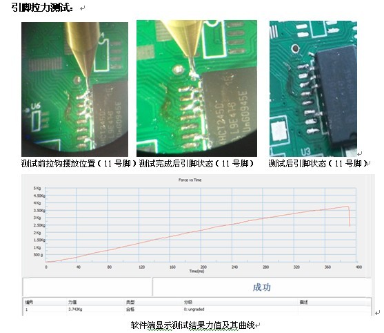 1.金线、铝线键合拉力测试。 2.金线、铝线焊点剪切力测试。 3.晶元焊接(固晶)剪切力测试。 4.PCB 贴装电阻、电容元件剪切力测试。 5.BGA植球剪切力测试。 6.BGA植球群推试验。 7.BGA贴装推力测试。 8.QFP引脚焊点剪切力测试。...